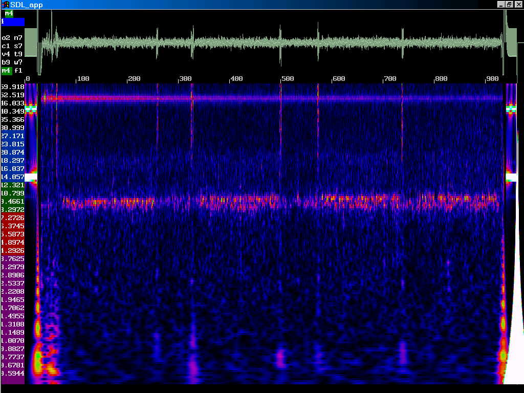 In the the joint time-frequency-display (JTF) a periodic modulation of