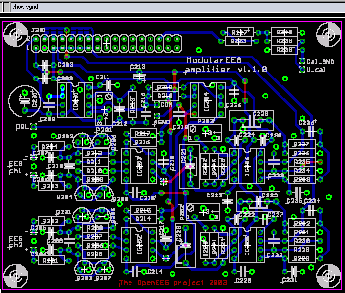 Here is a picture of the modularEEG analog pcb with all VGND pins and